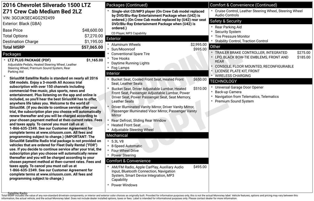 CarBravo Certified, Back-up Camera, Remote Start, Super Clean, Silverado 1500 LTZ 2LZ, Bravo Budget GM Certified Certified, 4D Crew Cab, EcoTec3 5.3L V8, 4WD, 110-Volt AC Power Outlet, 150 Amp Alternator, 3.42 Rear Axle Ratio, 4-Wheel Disc Brakes, 4.2 Diagonal Color Display Driver Info Center, 40/20/40 Front Split Bench Seat, 6 Speaker Audio System, 6 Speakers, ABS brakes, Air Conditioning, Alloy wheels, AM/FM radio: SiriusXM, Auto-dimming door mirrors, Auto-Dimming Inside Rear-View Mirror, Auto-dimming Rear-View mirror, Automatic temperature control, Auxiliary External Transmission Oil Cooler, Bluetooth® For Phone, Bodyside moldings, Bose Speaker System, Brake assist, CD player, Chrome Bodyside Moldings, Chrome Cap Power-Adjustable Heated Outside Mirrors, Chrome Door Handles, Chrome Mirror Caps, Color-Keyed Carpeting w/Rubberized Vinyl Floor Mats, Compass, Deep-Tinted Glass, Delay-off headlights, Driver & Front Passenger Illuminated Vanity Mirrors, Driver door bin, Driver vanity mirror, Dual front impact airbags, Dual front side impact airbags, Dual-Zone Automatic Climate Control, Electric Rear-Window Defogger, Electronic Stability Control, Emergency communication system: OnStar Guidance, Exterior Parking Camera Rear, EZ Lift & Lower Tailgate, Floor Mounted Console, Front & Rear Black Bowtie Emblems (LPO), Front anti-roll bar, Front Center Armrest w/Storage, Front Chrome Bumper, Front dual zone A/C, Front fog lights, Front Frame-Mounted Black Recovery Hooks, Front Full Feature Power Reclining Bucket Seats, Front License Plate Kit, Front reading lights, Front wheel independent suspension, Fully automatic headlights, Garage door transmitter, HD Radio, Heated & Vented Front Seating, Heated door mirrors, Heated Driver & Front Passenger Seats, Heated front seats, Heavy-Duty Rear Locking Differential, Illuminated entry, Integrated Trailer Brake Controller, Leather Appointed Seat Trim, Leather Wrapped Heated Steering Wheel, Leather Wrapped Steering Wheel w/Cruise Controls, LED Taillamps w/Signature, Low tire pressure warning, LTZ Plus Package, Manual Tilt/Telescoping Steering Column, Memory seat, Occupant sensing airbag, OnStar 6 Months Guidance Plan, OnStar w/4G LTE, Outside temperature display, Overhead airbag, Overhead console, Panic alarm, Passenger door bin, Passenger vanity mirror, Power Adjustable Pedals, Power door mirrors, Power driver seat, Power passenger seat, Power Sliding Rear Window, Power steering, Power Sunroof, Power windows, Power Windows w/Driver Express Up, Premium audio system: Chevrolet MyLink, Radio data system, Radio: AM/FM 8 Diagonal Clr Touch Nav, Radio: AM/FM 8 Diagonal Color Touch Screen, Rear 60/40 Folding Bench Seat (Folds Up), Rear Chrome Bumper, Rear reading lights, Rear seat center armrest, Rear step bumper, Rear Vision Camera w/Dynamic Guide Lines, Rear Wheelhouse Liners, Rear window defroster, Remote Keyless Entry, Remote keyless entry, Remote Locking Tailgate, Remote Vehicle Starter System, Security system, Single Slot CD/MP3 Player, SiriusXM Satellite Radio, Speed control, Speed-sensing steering, Split folding rear seat, Spray-On Pickup Box Bed Liner, Steering Wheel Audio Controls, Steering wheel mounted audio controls, Tachometer, Telescoping steering wheel, Theft Deterrent System (Unauthorized Entry), Thin Profile LED Fog Lamps, Tilt steering wheel, Traction control, Trailering Package, Trip computer, Turn signal indicator mirrors, Ultrasonic Front & Rear Park Assist, Universal Home Remote, Variably intermittent wipers, Voltmeter, Wheels: 22 6-Spoke Black (LPO), Wheels: 22 x 9 Steel Interim (LPO), Wireless Charging, Silverado 1500 LTZ 2LZ, 4D Crew Cab, EcoTec3 5.3L V8, 4WD.