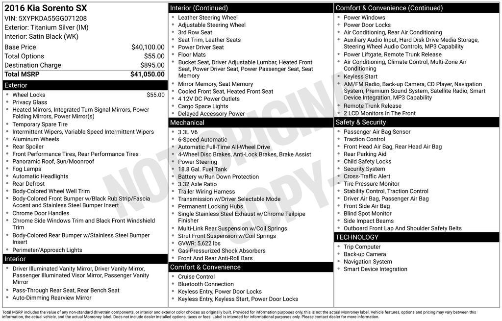 2016 Kia Sorento 3.3L SX