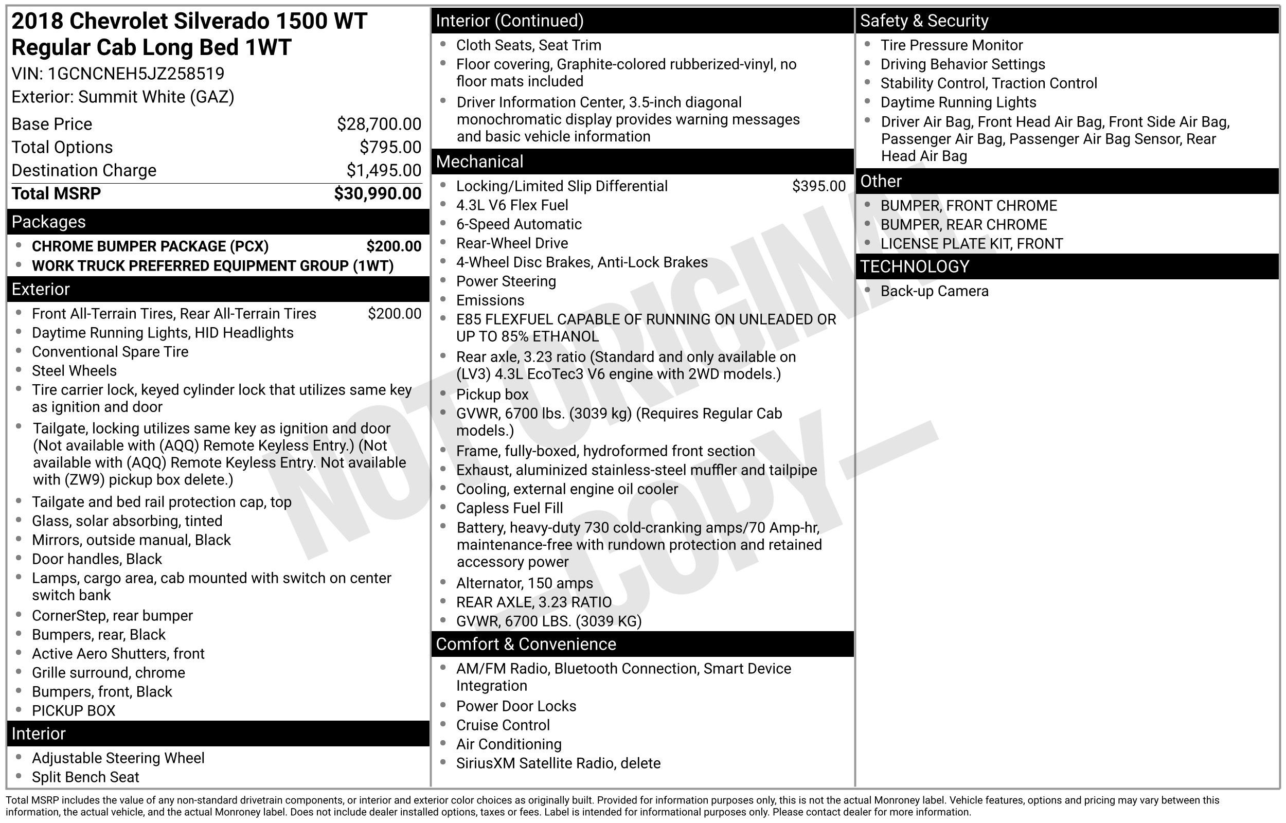 Bargain Lot Vehicle, 6-Speed Automatic Electronic with Overdrive, Dark Ash With Jet Black Interior Accents Cloth, 150 Amp Alternator, 3.23 Rear Axle Ratio, 4-Wheel Disc Brakes, 40/20/40 Front Split Bench Seat, 6 Speakers, ABS brakes, Air Conditioning, AM/FM radio, Black Power Adjustable Heated Outside Mirrors, Bluetooth®® For Phone, Brake assist, Chevrolet Connected Access, Chevrolet w/4G LTE, Chrome Grille Surround, Cloth Seat Trim, Deep-Tinted Glass, Delay-off headlights, Driver door bin, Driver Information Center, Dual front impact airbags, Dual front side impact airbags, E85 FlexFuel Capable, Electronic Stability Control, Exterior Parking Camera Rear, Front anti-roll bar, Front Center Armrest w/Storage, Front Chrome Bumper, Front License Plate Kit, Front reading lights, Front wheel independent suspension, Fully automatic headlights, Graphite-Colored Rubberized-Vinyl Floor Covering, Heavy Duty Suspension, Heavy-Duty Rear Locking Differential, High-Intensity Discharge Headlights, Low tire pressure warning, Manual Tilt Wheel Steering Column, Occupant sensing airbag, OnStar & Chevrolet Connected Services Capable, Overhead airbag, Overhead console, Passenger door bin, Passenger vanity mirror, Power steering, Power Windows w/Driver Express Up, Premium audio system: Chevrolet MyLink, Radio data system, Radio: AM/FM w/7 Diagonal Color Touch Screen, Rear Chrome Bumper, Rear step bumper, Remote Keyless Entry, Remote Locking Tailgate, Speed control, Speed-sensing steering, Tachometer, Tilt steering wheel, Traction control, Trip computer, Variably intermittent wipers, Voltmeter, 6-Speed Automatic Electronic with Overdrive, Dark Ash With Jet Black Interior Accents Cloth.