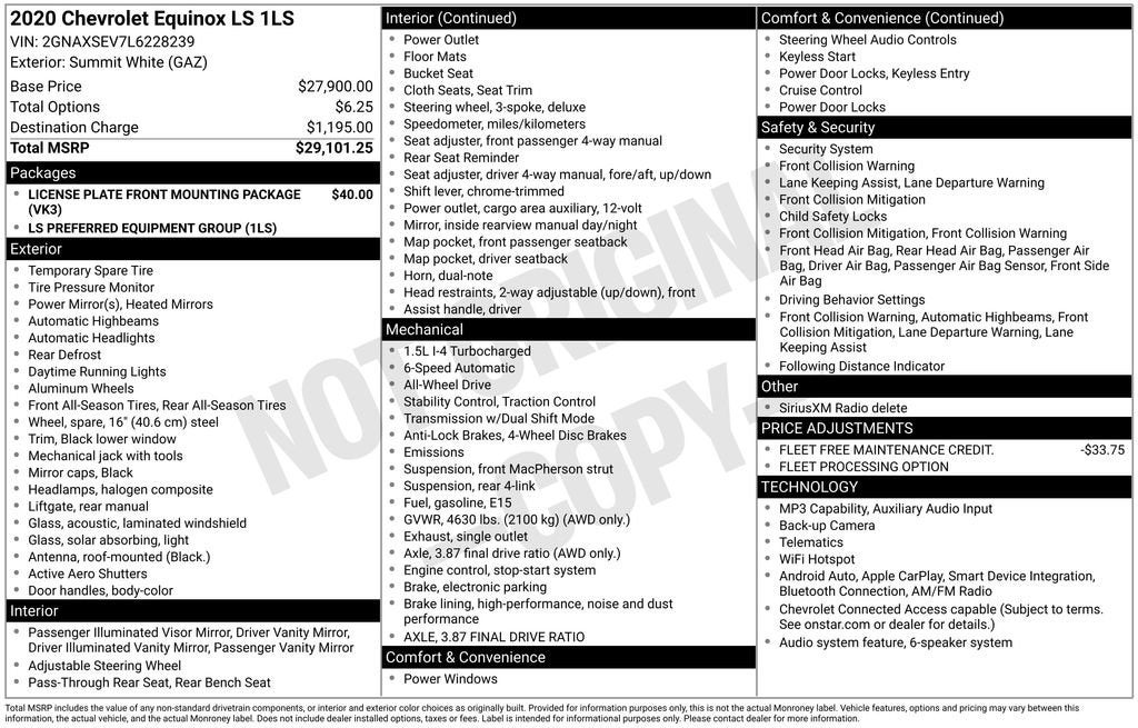 CarBravo Certified, **NICE CARE** Warranty on Brake Pads, Tires, Belts, Battery, Bulbs, Hoses, Spark Plugs and Wiper Bl, Back-up Camera, 1 Owner, Super Clean, Clean CarFax, Equinox LS, CarBravo GM Certified Certified, 1.5L DOHC, AWD, 17 Aluminum Wheels, 2 Rear USB Charging-Only Ports, 2 USB Ports & Auxiliary Input Jack, 3.87 Final Drive Axle Ratio, 4-Way Manual Driver Seat Adjuster, 4-Wheel Disc Brakes, 6 Speaker Audio System Feature, 6 Speakers, ABS brakes, Air Conditioning, Alloy wheels, AM/FM radio, Apple CarPlay/Android Auto, Auto High-beam Headlights, Bluetooth® For Phone, Brake assist, Bumpers: body-color, Compass, Delay-off headlights, Driver door bin, Driver vanity mirror, Dual front impact airbags, Dual front side impact airbags, Electronic Stability Control, Emergency communication system: OnStar and Chevrolet connected services capable, Four wheel independent suspension, Front anti-roll bar, Front Bucket Seats, Front Center Armrest, Front Passenger 4-Way Manual Seat Adjuster, Front reading lights, Fully automatic headlights, Heated door mirrors, Illuminated entry, Low tire pressure warning, Occupant sensing airbag, Outside temperature display, Overhead airbag, Overhead console, Panic alarm, Passenger door bin, Passenger vanity mirror, Power door mirrors, Power steering, Power windows, Preferred Equipment Group 1LS, Premium audio system: Chevrolet Infotainment 3, Premium Cloth Seat Trim, Radio data system, Radio: Chevrolet Infotainment 3 System w/AM/FM, Rear anti-roll bar, Rear reading lights, Rear seat center armrest, Rear window defroster, Rear window wiper, Remote keyless entry, Security system, SiriusXM Radio Delete, Speed control, Speed-sensing steering, Split folding rear seat, Spoiler, Steering wheel mounted audio controls, Tachometer, Telescoping steering wheel, Tilt steering wheel, Traction control, Trip computer, Variably intermittent wipers, Equinox LS, 1.5L DOHC, AWD.