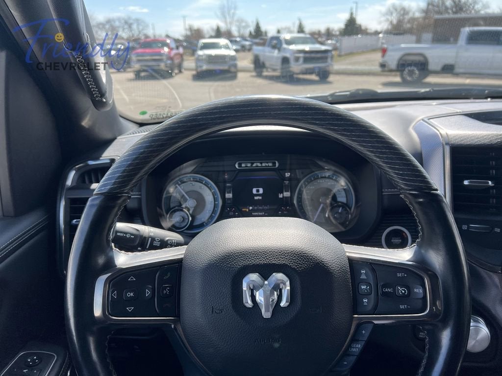 CarBravo Certified, Back-up Camera, Remote Start, Super Clean, 1500 Limited, HEMI 5.7L V8 Multi Displacement VVT, 4WD, 1-Yr SiriusXM Guardian Trial, 10 Speakers, 4-Wheel Disc Brakes, 48V Belt Starter Generator, 4G LTE Wi-Fi Hot Spot, ABS brakes, Adjustable pedals, Advanced Safety Group, Air Conditioning, Alloy wheels, AM/FM radio: SiriusXM with 360L, Apple CarPlay, Apple CarPlay/Android Auto, Audio memory, Auto High-beam Headlights, Auto-dimming door mirrors, Auto-dimming Rear-View mirror, Auto-leveling suspension, Automatic temperature control, Bed Utility Group, Bodyside moldings, Brake assist, Bumpers: chrome, Chrome Exterior Mirrors, Chrome Power-Fold Trailer Tow Mirrors, Compass, Delay-off headlights, Disassociated Touchscreen Display, Driver door bin, Driver vanity mirror, Dual front impact airbags, Dual front side impact airbags, Electronic Stability Control, Emergency communication system: SiriusXM Guardian, Exterior Mirrors Courtesy Lamps, Exterior Mirrors w/Heating Element, Exterior Mirrors w/Memory, Exterior Mirrors w/Supplemental Signals, For More Info, Call 800-643-2112, Front anti-roll bar, Front Bucket Seats, Front Center Armrest w/Storage, Front dual zone A/C, Front fog lights, Front License Plate Bracket, Front reading lights, Front wheel independent suspension, Fully automatic headlights, Garage door transmitter, Genuine wood console insert, Genuine wood dashboard insert, Genuine wood door panel insert, Google Android Auto, GPS Antenna Input, GPS Navigation, HD Radio, Heated door mirrors, Heated front seats, Heated rear seats, Heated steering wheel, Illuminated entry, Integrated Center Stack Radio, Integrated Voice Command w/Bluetooth®, Leather steering wheel, Low tire pressure warning, Manufacturer's Statement of Origin, Memory seat, Mirror Clearance/Running Lights, Mirror-Mounted Aux Reverse Lamps, Multi-Function Tailgate, Navigation System, Occupant sensing airbag, Outside temperature display, Overhead airbag, Overhead console, Panic alarm, ParkView Rear Back-Up Camera, Passenger door bin, Passenger vanity mirror, Pedal memory, Power door mirrors, Power driver seat, Power passenger seat, Power steering, Power windows, Power-Folding Mirrors, Premium Leather Trimmed Bucket Seats, Protection Group, Quick Order Package 27M Limited, Radio data system, Radio: Uconnect 12 w/Navigation, Rain sensing wipers, Rear anti-roll bar, Rear seat center armrest, Rear step bumper, Rear window defroster, Remote keyless entry, Security system, SiriusXM Radio Service, SiriusXM Satellite Radio, SiriusXM Traffic Plus, SiriusXM Travel Link, Speed control, Split folding rear seat, Steering wheel mounted audio controls, Surround View Camera System, Tachometer, Telescoping steering wheel, Tilt steering wheel, Traction control, Trailer Brake Control, Trailer Light Check, Trailer Tire Pressure Monitoring System, Trailer Tow Group (DISC), Trailer Tow Mirrors, Trip computer, Turn signal indicator mirrors, USB Host Flip, Variably intermittent wipers, Ventilated front seats, Voltmeter, Wheels: 20 x 9 Polished w/Inserts, 1500 Limited, HEMI 5.7L V8 Multi Displacement VVT, 4WD.