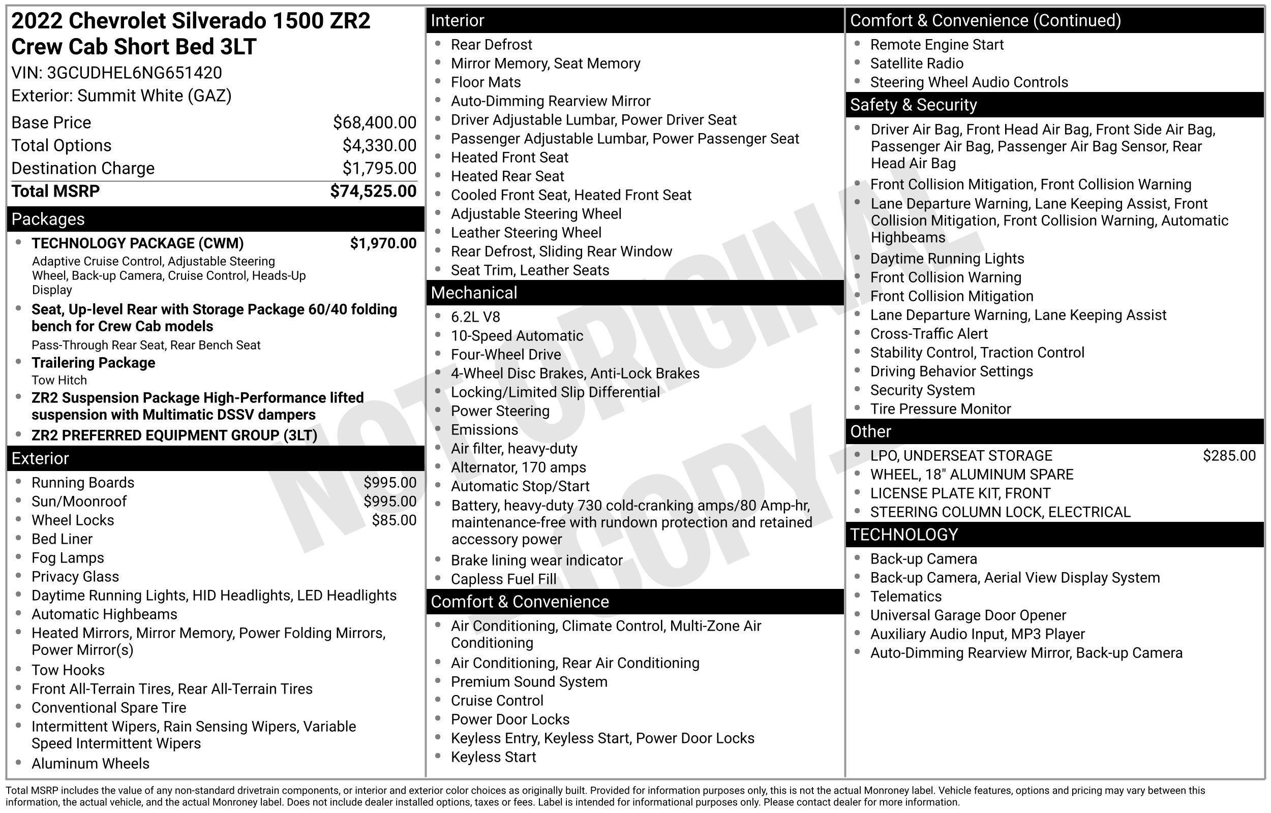 CarBravo 2022 Chevrolet Silverado 1500 ZR2